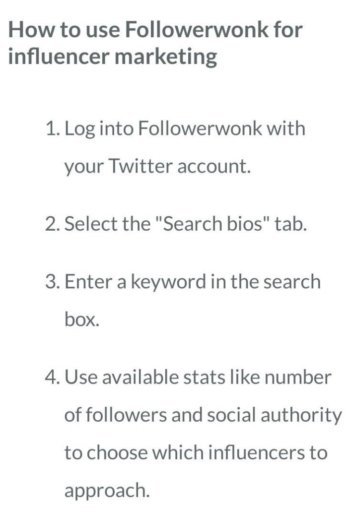 Use a Followerwonk to find influencers from Twitter. Through Twitter bios, a list of people in your niche will appear.