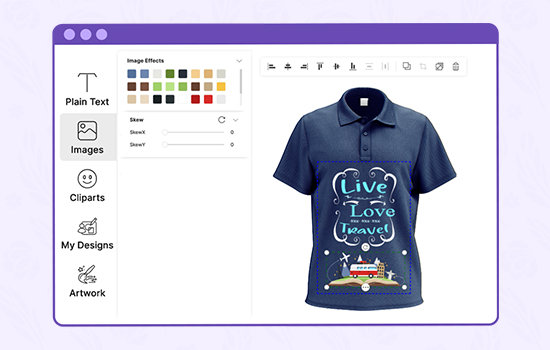 Such tools equip you with various features like clipart, artwork, image editor, and such. You can create designs using these features, and upload them to the tool.